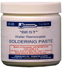 Always wear protective clothing and eye wear when soldering. Please refer to the separate OSHA Safety Data Sheets for additional information on Johnson’s Best Water Soluble Paste Flux.